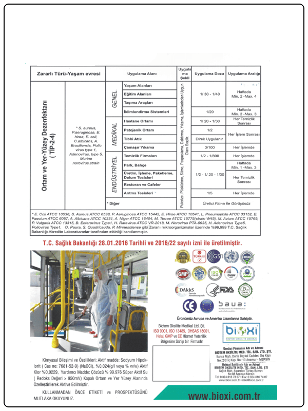 – Bioxi® tüm yüzeyler, çevre ve personel için ideal bir